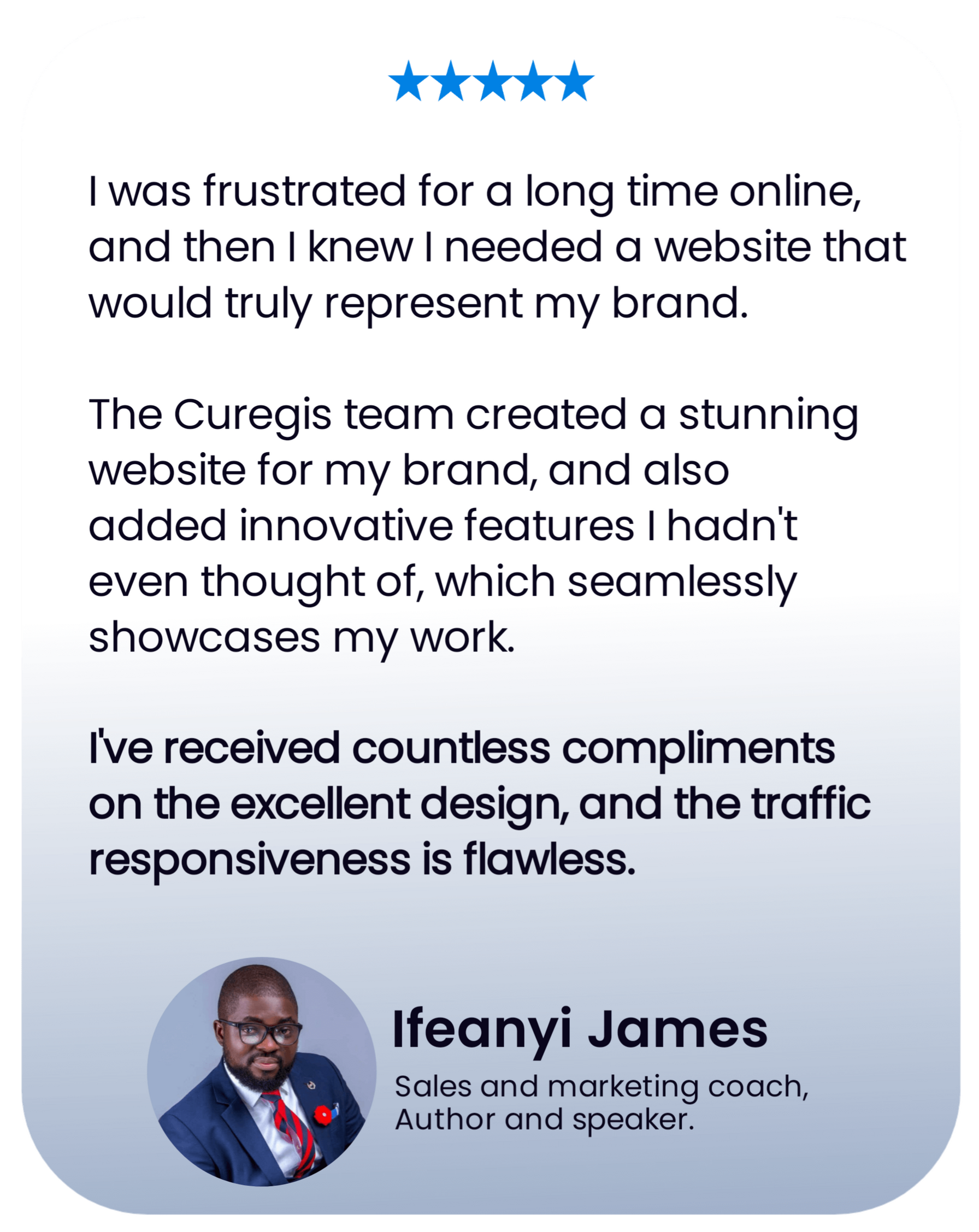 His dedication to his craft and the detailing he takes in while working on your brand is top-notch he opens your mind to exceptional ways to get more clients on your craft. I would recommend him anytime and any day with my eyes closed.