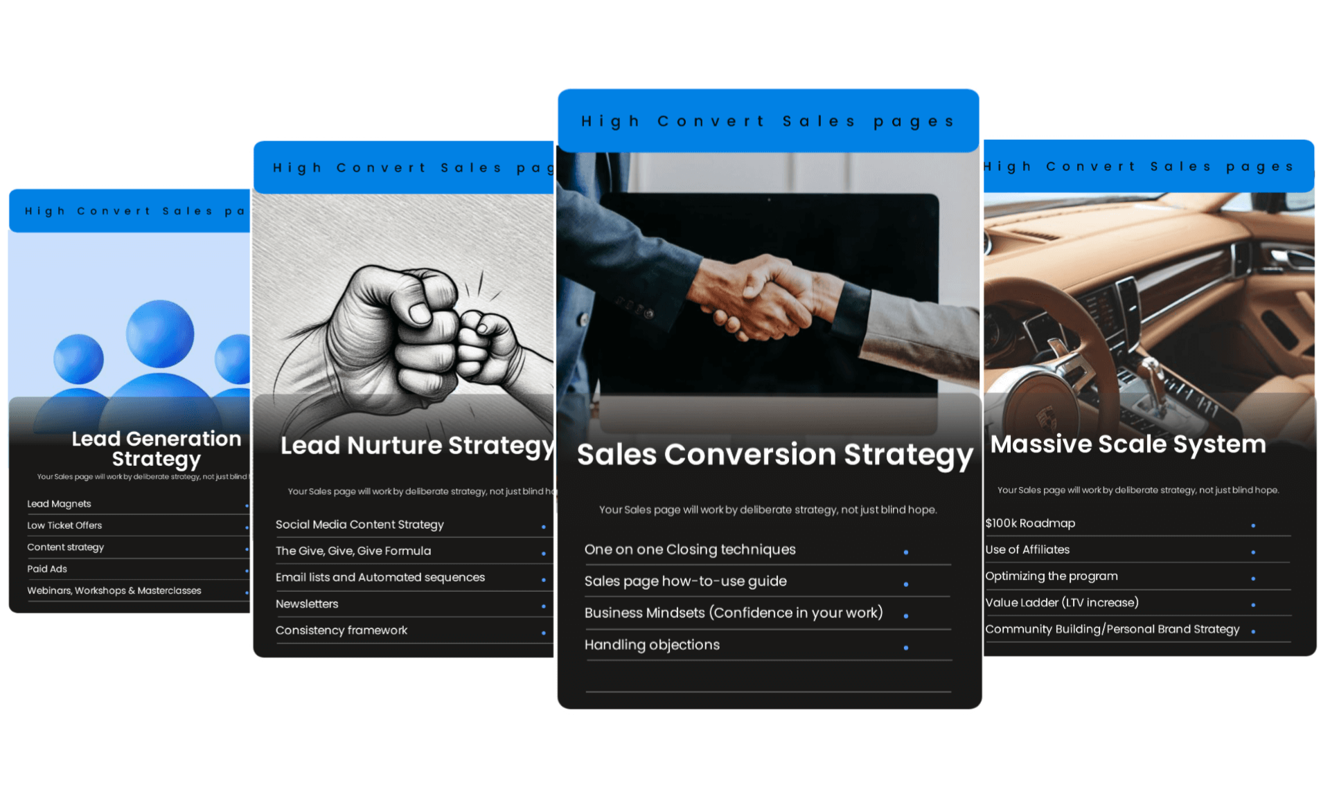 Sales pages work by deliberate strategy, not just blind hope. In this 2 hour strategy session, we will discuss your lead generation strategy, lead nurture and conversion systems, and even go beyond to plan a $100k roadmap for your online knowledge business.We will discuss email marketing, community building, brand strategy, and even your social media growth plan. You will also be able to ask any questions bordering around your sales page and business